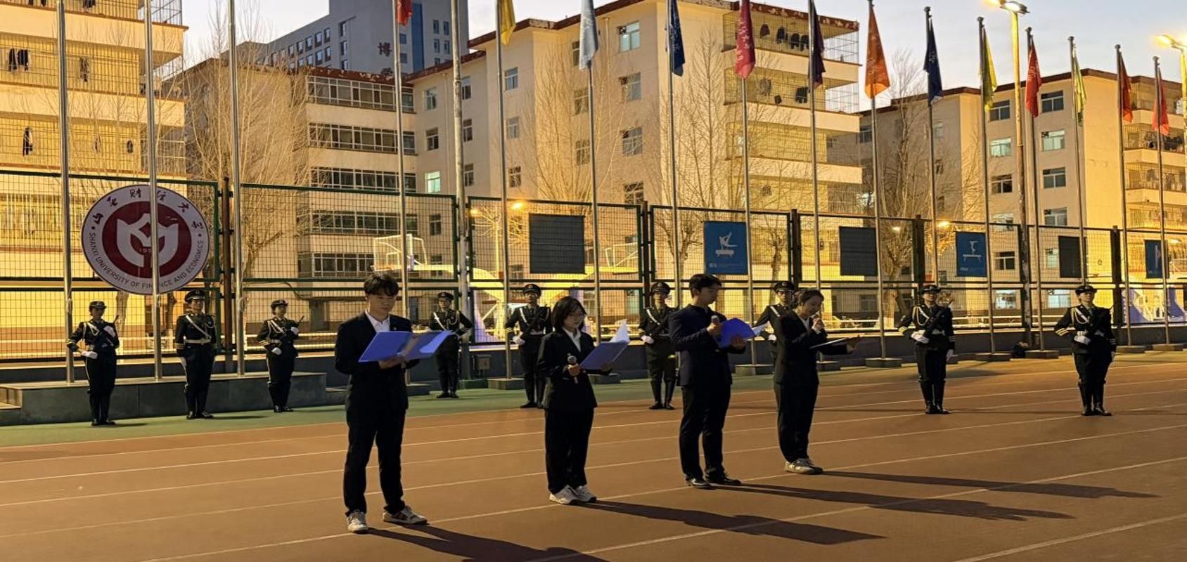 领导、全体辅导员及在校生共同参与,仪式由2023级劳动与社会保障班武悦同学主持。