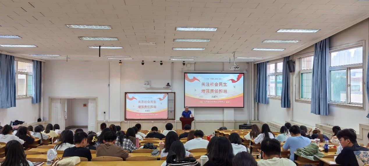 苏书记分别从社会民生的时代解读、责任担当的多元维度、社会民生问题的积极应对和深化民生改革的政策取向四个方面进行了精彩讲解。中国式现代化,民生为大。首先,他详细阐述了民生工作和民政事业的内容,随后,从就业、社会保障体系、人口高质量发展等多个关键维度,全面而系统地阐述了新时代背景下民生的生动图景,既有对当前民生改善成效的精准总结,又包含了对未来社会发展方向的科学预判,呈现了一幅多方面的全景式民生发展画卷。苏书记表示,做好社会民生的责任担当要从政府、社会、个人多个方面努力。针对社会民生问题,苏书记从完善社会保障体系、积极应对人口老龄化、健全分层分类社会救助体系等方面阐述了应对措施。最后,他引导学生理解把握社会民生改革的政策取向,倡议大家走出校园、走进社会生活、走进基层社区,热情投入积极参与各种社会实践,主动参与解决经济社会发展中的热点难点问题。