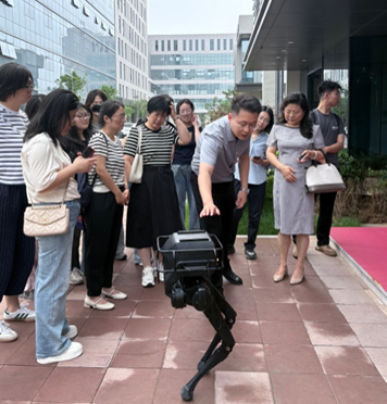 师生介绍了数据流量谷的整体概况,包括园区规划、产业布局、数据资源集聚及数字经济发展成果等,并带领参观了园区内的机器人,通过近距离观察与互动,师生们直观感受了智能机器人在操作领域的功能特性,对人工智能技术的实体化应用有了初步认识。在技术演示环节,数据流量谷团队通过模拟场景操作与效果呈现,使师生们深入理解了人工智能技术如何通过数据赋能提升效率、优化服务,切实体会到数字技术与实体经济融合发展的实践路径。