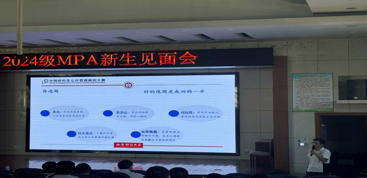 副院长段宇波围绕MPA研究生人才培养方案进行了解读。他详细介绍了山西财经大学MPA学位的基本情况、课程设置和师资力量,对2024级MPA新生的基本情况做出了简要说明。围绕导师遴选和沟通技巧、论文开题答辩相关要求等同学们目前最关心的问题进行了梳理。欢乐麻将下载
