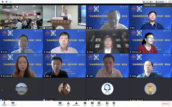 院长雷晓康教授主持会议,西北大学党委常委、副校长吴振磊致辞,中国社会保障学会副会长席恒教授介绍座谈会背景,中国社会保障学会会长、中国人民大学郑功成教授、中国社会保障学会副会长、浙江大学何文炯教授、中国社会保障学会监事、南京大学童星教授等8名专家展开主旨发言,共探学术前沿。