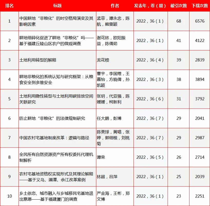近日,《中国土地科学》期刊发布2022年高被引TOP10论文,欢乐麻将app