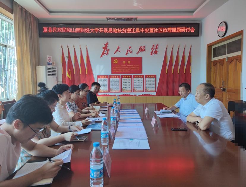 20日下午,调研组与夏县民政局局长杨天虹、副局长刘尧辉等相关同志进行了座谈。杨天虹首先对调研组的到来表示欢迎,简要介绍了“十三五”时期夏县易地扶贫搬迁集中安置情况,着重讲解了集中安置社区治理的特色和经验。刘尧辉介绍了夏县8个集中安置点的具体情况及社区治理模式。两人希望调研组能够吸收全国各地易地扶贫集中安置社区治理经验,立足夏县实际,发挥高校理论优势,为夏县易地扶贫集中安置社区治理出谋划策。双方围绕易地扶贫集中安置社区治理的特殊性、夏县8个集中安置社区的特点及治理问题等内容进行了深入交流。
