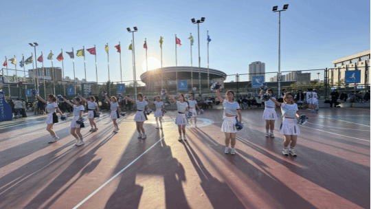 决赛中,队员们展现了出色的技巧,体现出顽强的拼搏精神。每一个跳跃、每一次旋转、每一个微笑都凝聚着勤奋的汗水。队员们尽情释放活力,即便汗水湿透衣衫,也依然全力以赴。那整齐划一的动作,是她们无数次排练的成果。现场观众们被队员们的精彩表现深深吸引,欢呼声、掌声此起彼伏,整个赛场沉浸在热烈的氛围中。