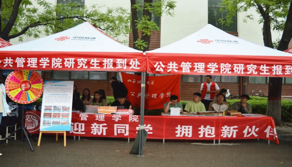 精心定制的迎新手牌,在展板前进行拍照留念。快门按下的那一瞬间,生成的是一份独属于自己和山财的开学剪影。