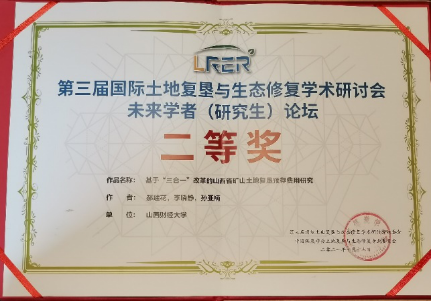 教师李晓静博士、2019级土地资源管理专业研究生郝建花应邀参加由中国煤炭学会和中国矿业大学主办的第三届国际土地复垦与生态修复学术研讨会。由郝建花、李晓静、孙亚楠共同撰写的论文获得了第三届国际土地复垦与生态修复学术研讨会“未来学者(研究生)论坛”二等奖,被论坛收录。