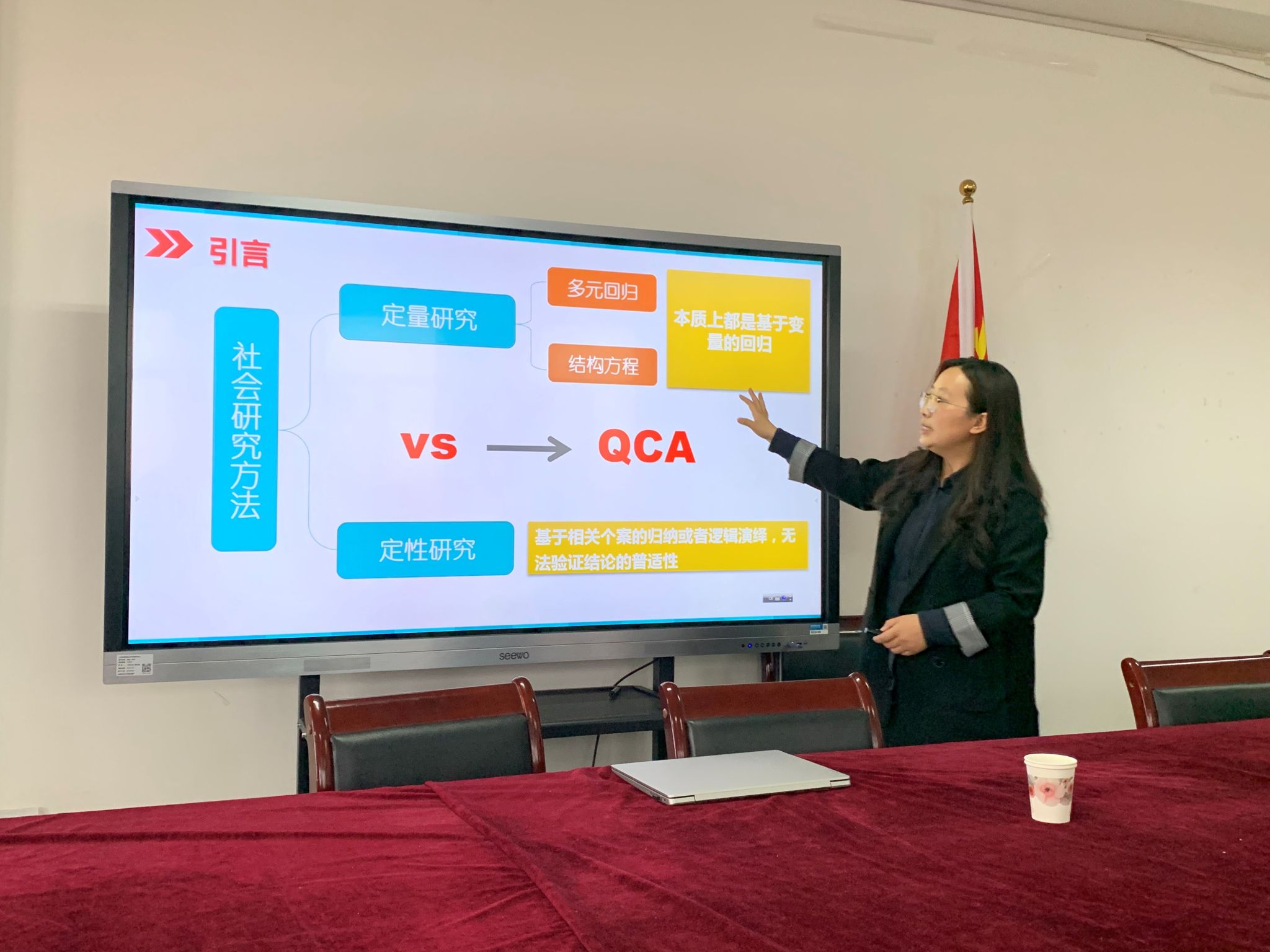 石文萍博士近年来持续关注和钻研QCA研究方法,并运用此方法发表了高质量学术论文,形成了对这一方法的深刻理解。石博士首先以一篇具体论文为例,为大家展示和分析了QCA在学术研究中的具体运用方式。随后,对QCA的底层逻辑进行了十分全面详细的解析,指出QCA相较于社会科学传统的定量和定性研究方法来说,带给社会科学研究的已远远不是一种技术性手段,而是一种全新的研究逻辑。最后,石博士讲解了QCA软件的具体使用方法和步骤。整个分享过程逻辑清晰,深入浅出,通过对QCA研究方法的“祛魅”,揭示出了这一方法的特色。
