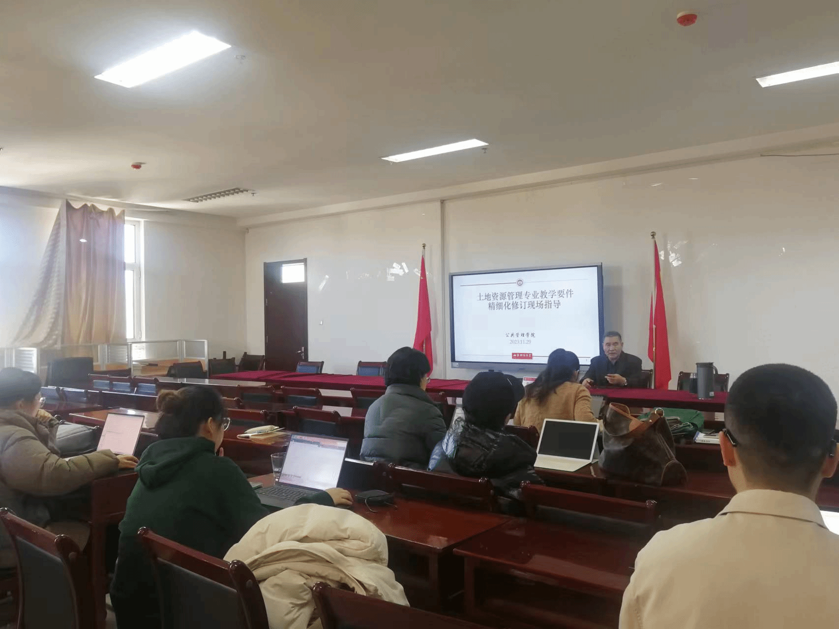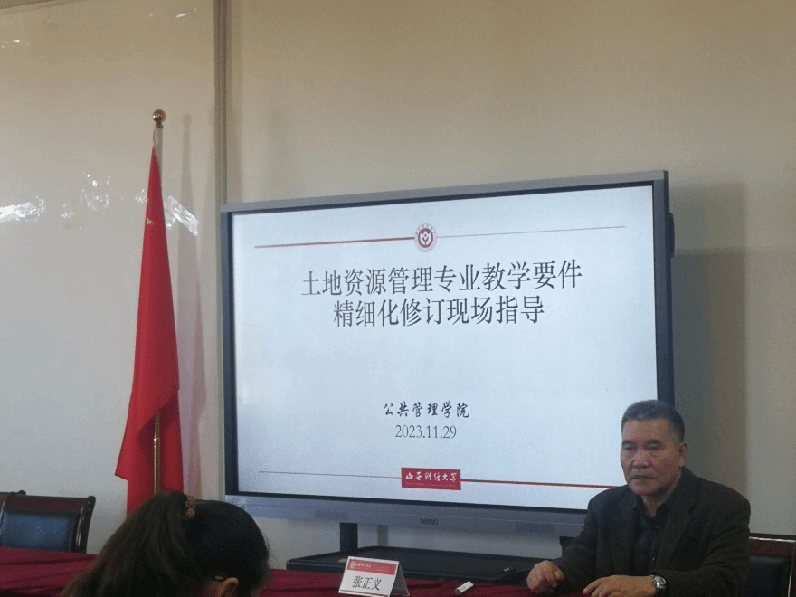 会议室对土地资源管理专业教学要件精细化修订进行现场指导。